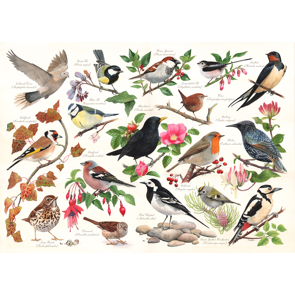 - Intricate 1000-piece puzzle featuring diverse garden birds