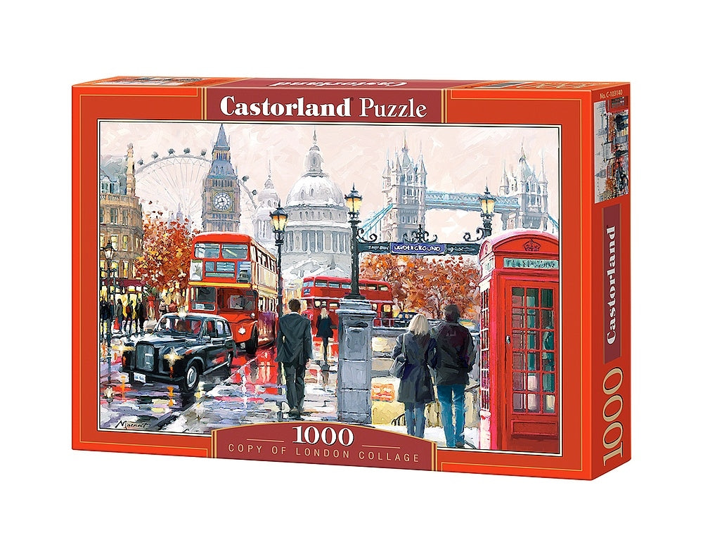Embark on a pictorial journey through the heart of the UK with our London Collage 1000-piece puzzle. This beautifully crafted puzzle merges the historic and modern symbols of London into a vibrant collage. From the majestic Big Ben to the iconic red double-decker buses and classic black cabs, each piece brings you closer to the dynamic energy of one of the world's most famous cities. The vivid depiction of London's landmarks, combined with the bustling streets and timeless red phone booths, captures the essence of the city's unique charm.
