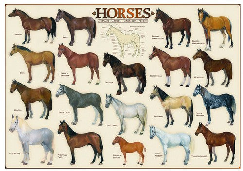 This puzzle features a diagram of equine anatomy and 19 beautifully illustrated horse species, including the Friesian, the Arabian and the Percheron.