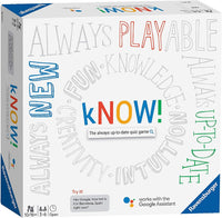 But kNOW! is more than just a quiz game. With various game types, you'll use your creativity, strategy skills, and intuition to win. Stay current with Professor kNOW as new content packs are regularly added for free. Simply play online using the Google Assistant App on your smartphone or with smart speakers. Online play is for ages 16+ as it requires users to have a Google account.