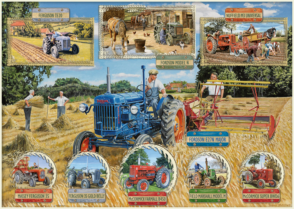 Tractors have supported out nation and revolutionized farming across the world, and these beautiful, hand-created illustrations honour the history of this important piece of machinery. Amongst the images you’ll discover the iconic Fordson Model N (top centre), which helped turn thousands of acres over to food production during the 1940s, and was later replaced by the E27N (main central image). There’s also the Ferguson TE20 (top left), famed for its hydraulic three-point hitch system which set the international standard for tractors that has remained to this day. William Morris (famous for Morris cars) introduced the Nuffield Universal at the 1948 Smithfield Agricultural Show, and the M3 version (top right) was used for row crop work and is shown here with a front mounted coverer.